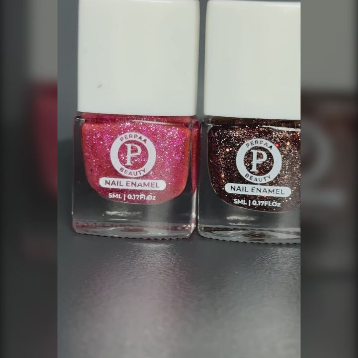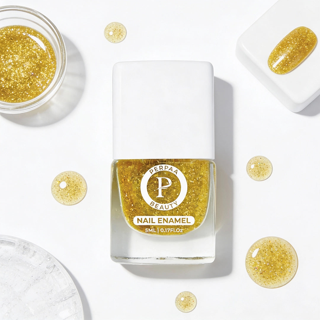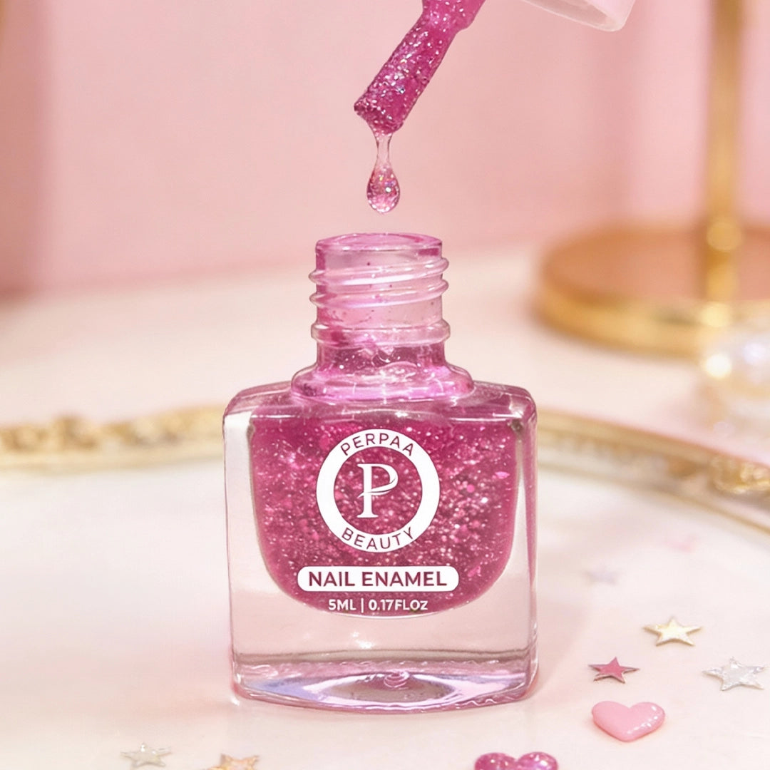 Perpaa Beauty's Glitter Nail Polish from the Shine Collection delivers a salon-like glossy finish within minutes. Made with a high-pigment, quick-drying French formula, this nail polish gives your nails a rich and vibrant color with up to 80% more pigmentation.