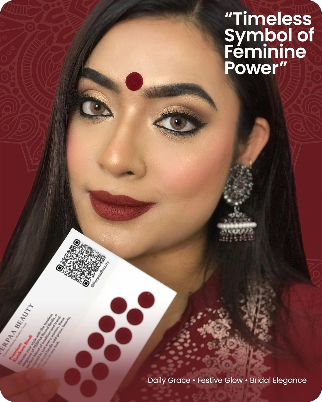 Add a refined spiritual touch to your look with Perpaa Beauty Premium Kumkum Bindi. Crafted from high-quality velvet with a skin-safe adhesive, it blends tradition, beauty, and wellness. Worn at the Ajna Chakra, it enhances focus, intuition, and divine energy—perfect for festivals, rituals, and sacred celebrations.
