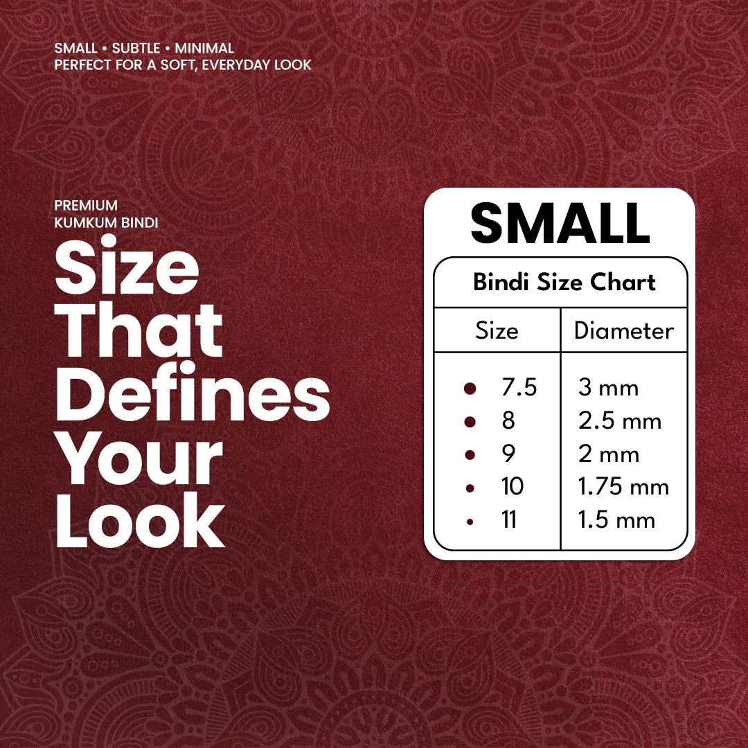 Premium Kumkum Bindi– Size 7.5, 3mm (Small) | 15 Flaps