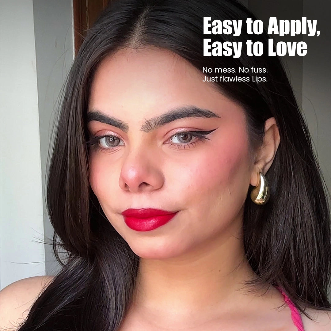 The Velvet Matte Finish glides on with a Smooth, Lightweight Texture, delivering a Highly Pigmented, Soft Matte Look in just one swipe. Enriched with Vitamin E, it’s a Hydrating, Non-Drying, and Comfort Wear Lipstick that keeps lips soft and nourished.